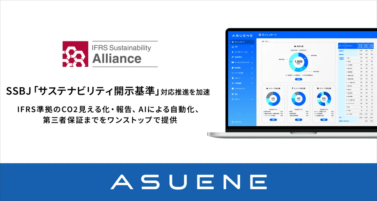 アスエネ株式会社は、企業がサステナビリティ情報を効果的に開示できるよう、新たに公表された「サステナビリティ開示基準(SSBJ)」への支援を強化しています。2025年3月5日にSSBJが発表したこの基準は、2027年から時価総額3兆円以上の企業に対して開示を必須とするもので、同社の持つ「ASUENE」サービスはその基準に準拠しています。