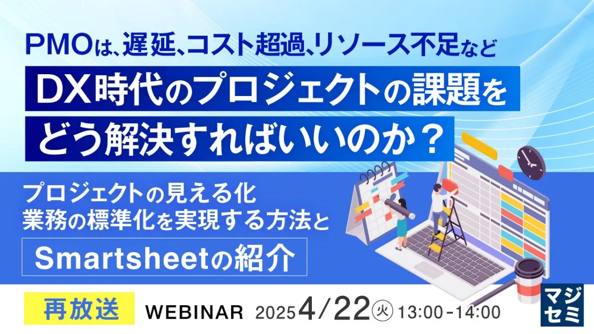 今回は、2025年4月に開催されたウェビナーの再放送が行われます。そのテーマは、デジタルトランスフォーメーション(DX)の進展に伴い、進行中のプロジェクトが抱える課題の解決です。具体的には、遅延、コスト超過、リソース不足といった典型的な問題が取り上げられます。