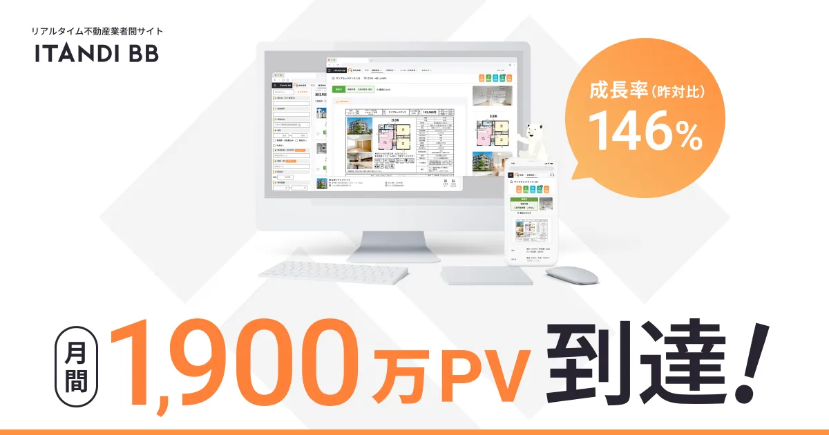 イタンジ株式会社が提供する不動産業者向けサイト「ITANDI BB」が2025年2月度において、仲介会社からの月間アクセスが約1,900万PVに到達しました。これは昨年度の146%の成長を示し、同サービスの重要性が高まっていることを物語っています。
