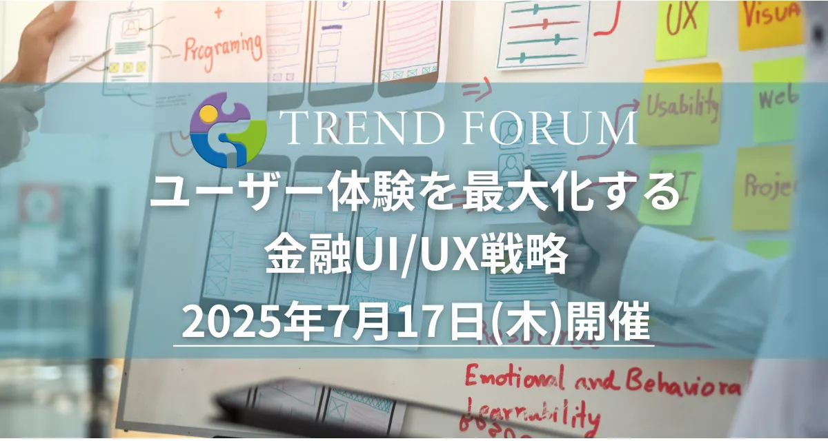2025年7月17日木曜日、東京にて、株式会社セミナーインフォ主催の「TREND FORUM」が開催されます。このイベントのテーマは「ユーザー体験を最大化する金融UI/UX戦略」です。金融業界全般においてますます重要性が増すUI/UX(ユーザーインターフェイス/ユーザーエクスペリエンス)デザインに焦点を当てます。