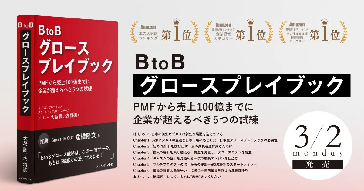 2026年3月2日、株式会社リブ・コンサルティングが新たに出版する書籍『BtoBグロースプレイブック PMFから売上100億までに企業が超えるべき5つの試練』が注目を集めています。この書籍は、予約開始からわずかのうちにAmazonの売れ筋ランキングで「企業経営」など3つのカテゴリで1位を獲得し、多くの期待が寄せられています。