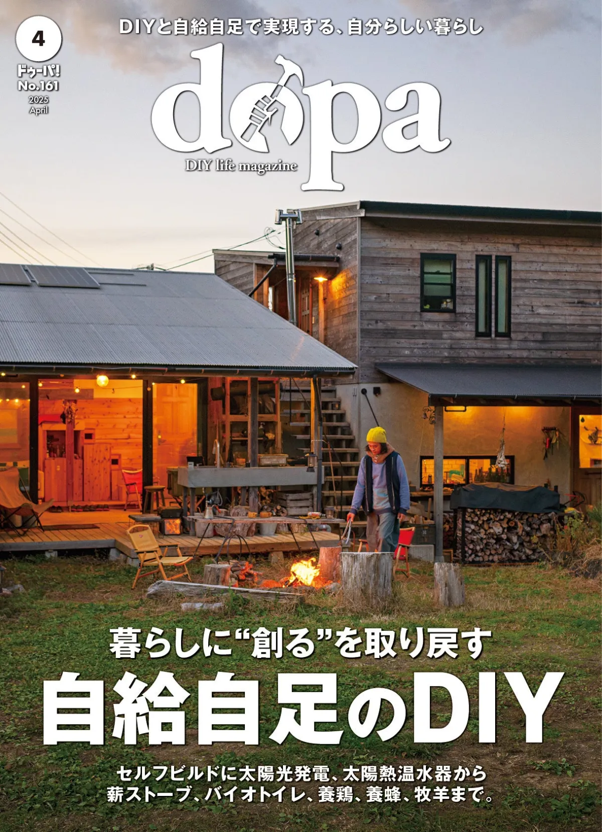 株式会社ワン・パブリッシングから発行される「dopa」2025年4月号(161号)が、心に響く自給自足のライフスタイルを特集しています。特集のテーマは「自給自足×DIY」。この号では、現代社会の消費加速と格差拡大の影響から距離を置く、心と身体に正直な暮らしを追求するDIYerたちの魅力的な取り組みを紹介しています。