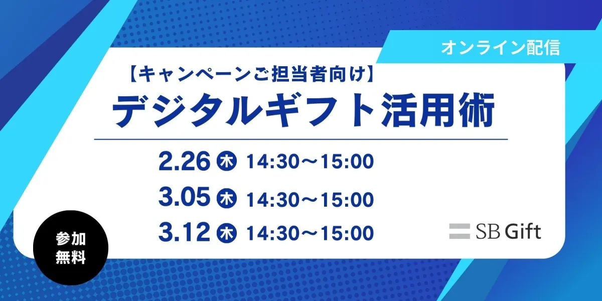 SBギフト株式会社が提供するデジタルギフトに関する無料ウェビナーが、2026年2月26日から3回にわたり開催されます。このウェビナーは、法人企業向けに特化した内容で、デジタルギフトの導入や活用法について具体的に解説します。