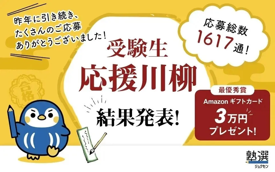 株式会社DeltaXが運営する学習塾検索サイト『塾選』は、受験生を応援するための川柳募集を実施しました。この企画は、受験生たちの努力する姿を多くの人々が応援する気持ちを形にしようと企画されたものです。