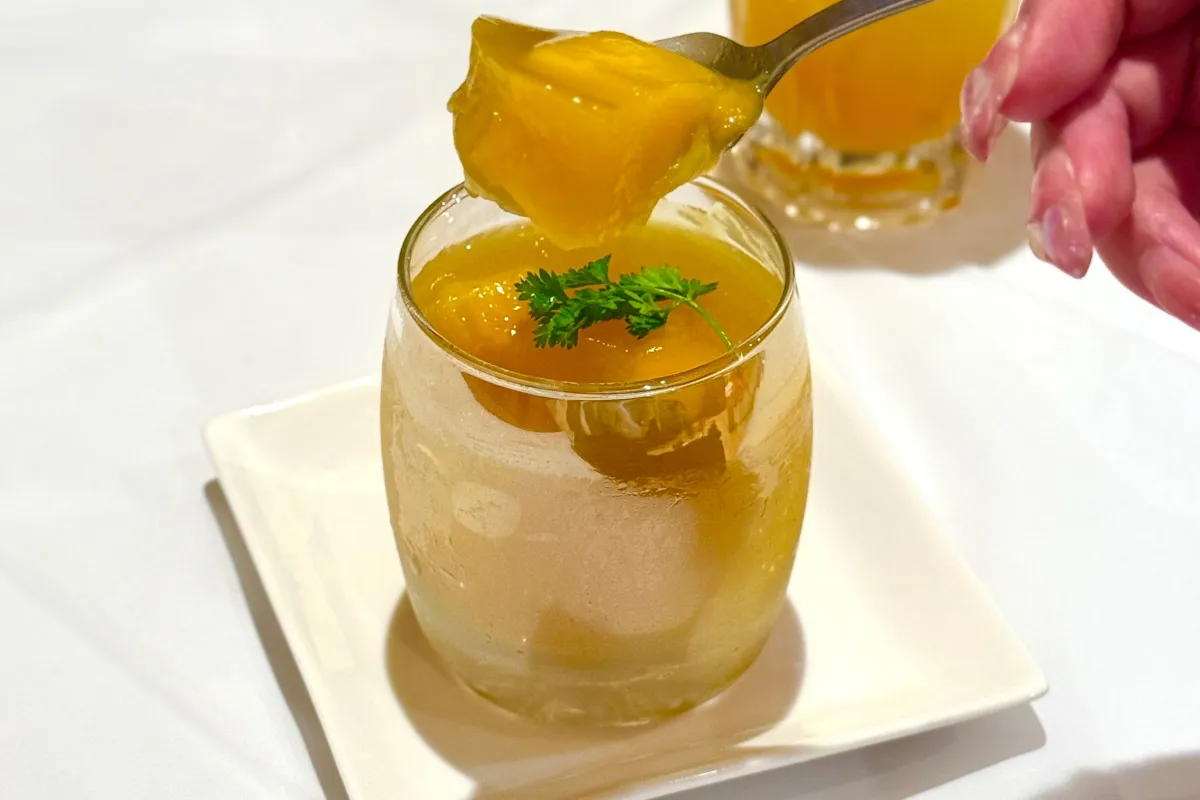 食後のデザートには、本場インド産のアルフォンソマンゴーを使ったマンゴージェラートが楽しめます。このアイスクリームは、濃厚ながらもすっきりとした後味で、暑い夏の日にぴったりの一品です。また、果汁100%のブレンドジュースで作られたマンゴーゼリーは、ぷるりとした食感がたまらない逸品です。果実本来の甘みを引き立たせたこのゼリーも、ぜひ味わってみたいメニューです。