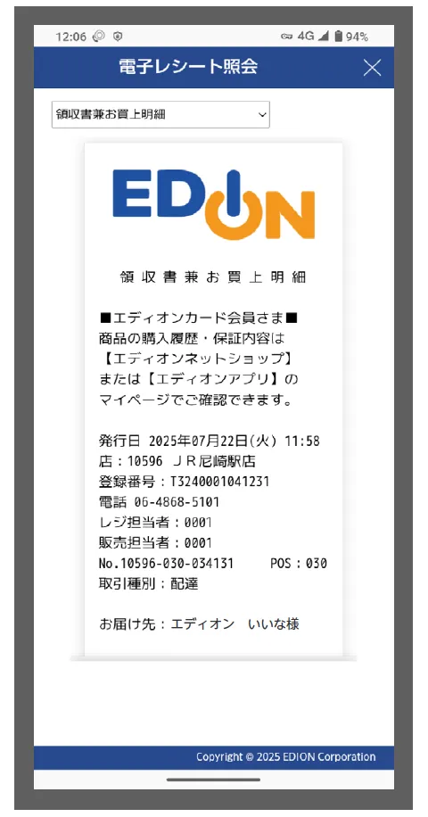 エディオンの「エディオンアプリ」を利用することで、お客様はスマートフォンを通じて電子レシートを簡単に受け取れるようになります。紙のレシートとは異なり、手間なく整理・保管ができ、いつでも必要な時に確認することができます。これにより、お買い物から5年間の履歴を手元で管理できる環境が整います。