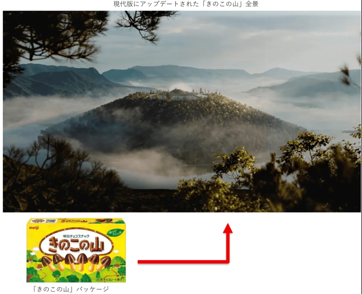 1975年に誕生し、多くの人々に愛され続けている「きのこの山」。商品パッケージの世界では、想像上の風景が描かれており、多くのファンに親しみを持たれてきました。本プロジェクトは、これを現代のテクノロジーによって再解釈し、実際に「存在しないものを所有する」という新しい価値を提供します。クラスター社では、都市部の物価高や住宅価格の高騰に応える形で、バーチャル空間にて、なんと1万円から自分の家を持てる可能性を提案しています。