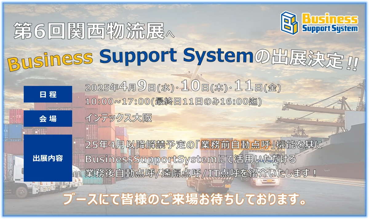 運送業界を支えるシステム、BusinessSupportSystem(BSS)が2025年4月9日から11日まで、大阪で開催される第6回関西物流展に出展します。この展示会は、運送事業者を中心に1,000社以上が参加する期待のイベントです。