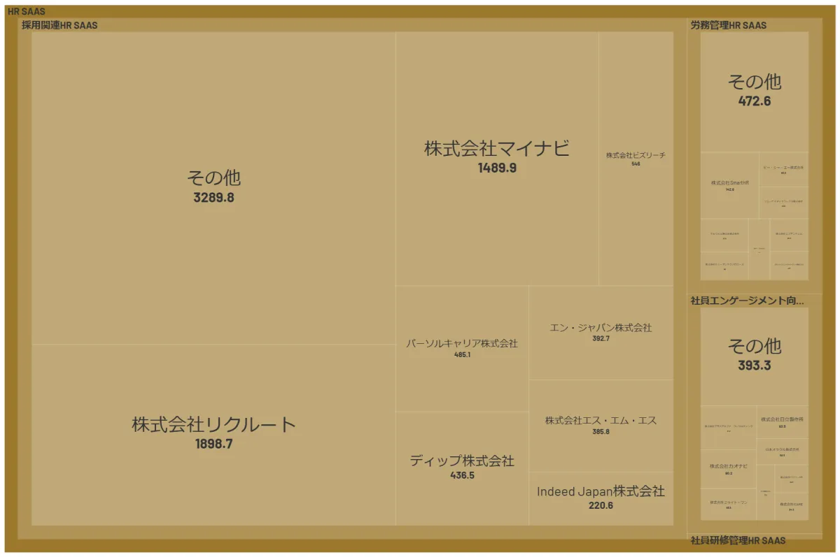 これによって、各分野における企業の競合状況も視覚化され、業界全体のトレンドが一目で把握できるようになっています。