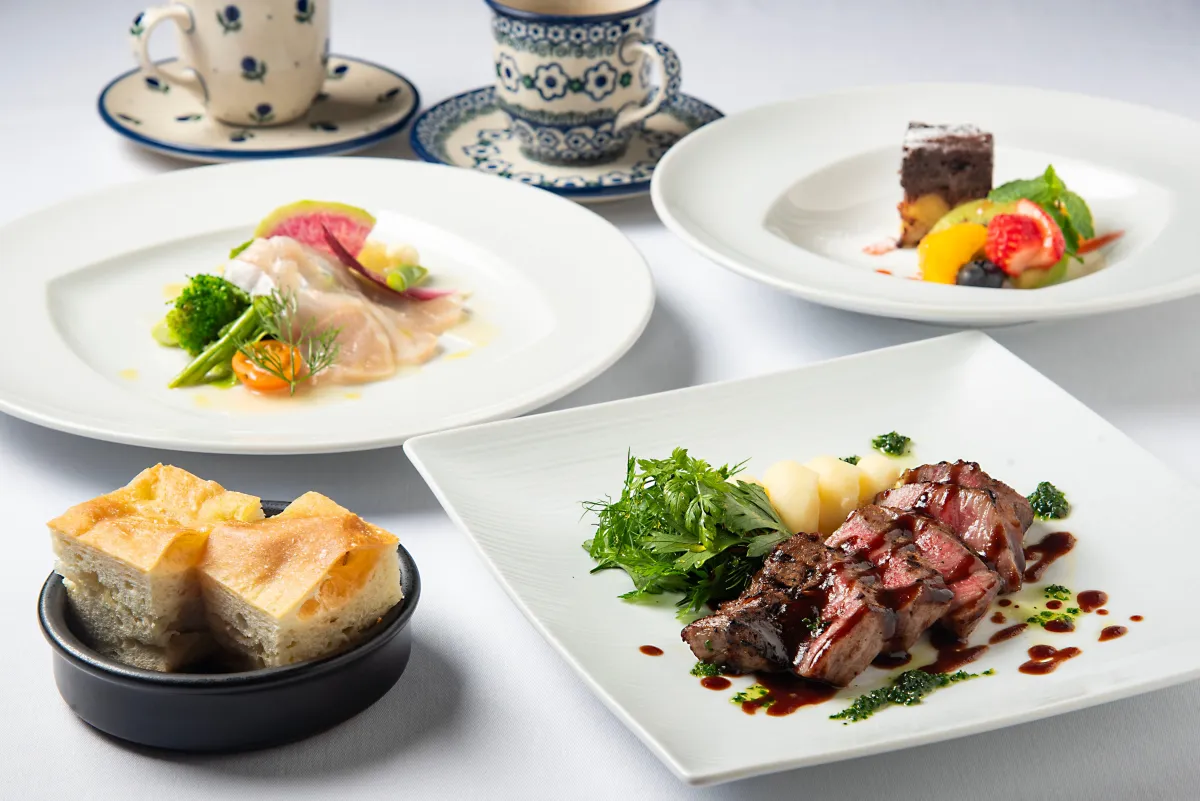 ワイナリーレストラン・サンクゼールでは、長野の地元食材をふんだんに使用した多彩なメニューが揃っています。特に注目すべきは、前菜やメイン料理がそれぞれ数種類から選べる点です。自分の好きな食材を選んで、自分だけのランチを楽しめるのは、特に女性に嬉しいポイントでしょう。