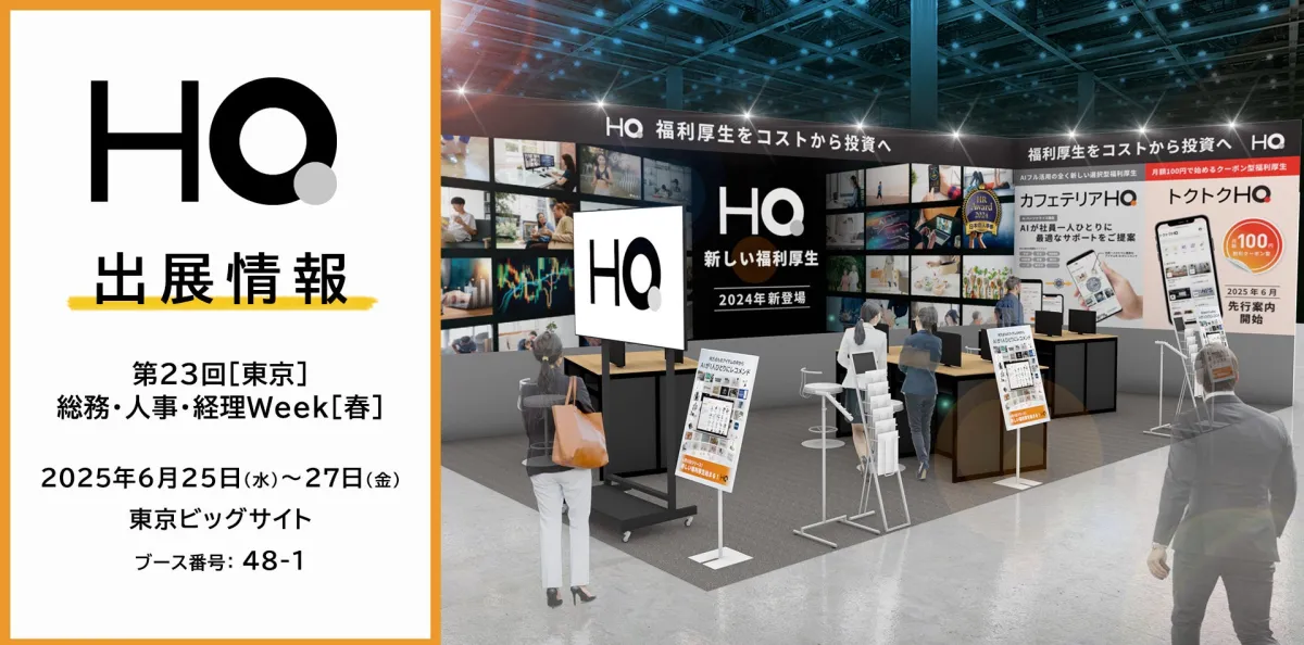 2025年、福利厚生の新しい形を提供する株式会社HQ(エイチキュー)が、東京ビッグサイトで開催される【第23回[東京]総務・人事・経理Week[春]】に出展します。ここでは、同社が開発中の2つのプラットフォーム「カフェテリアHQ」と「トクトクHQ」を紹介します。これらはすべての社員が平等に、そして簡単に利用できることを目指しています。