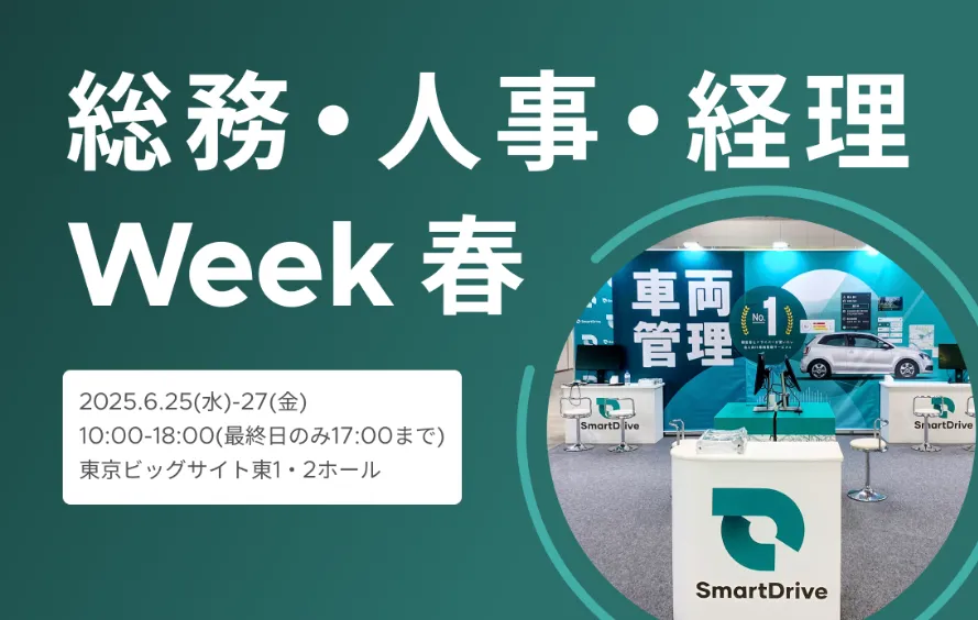 2025年6月25日から27日までの3日間、東京ビッグサイトで行われる「総務・人事・経理Week [春]」に、株式会社スマートドライブが出展することをお知らせいたします。本展示会は、RX Japan株式会社主催のもと、日本最大規模のバックオフィスや経営者向けの展示会として、多くの企業や業界の最新情報が一堂に会する場として位置づけられています。