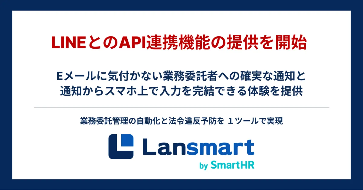 このような状況の中、Lansmart by SmartHRは国内で高い利用率を誇るLINEとのAPI連携を導入することで、業務連絡や申請依頼の到達率アップを目指します。企業からの通知を業務委託者が手軽にスマートフォンで受け取れることで、迅速な業務対応が期待されます。
