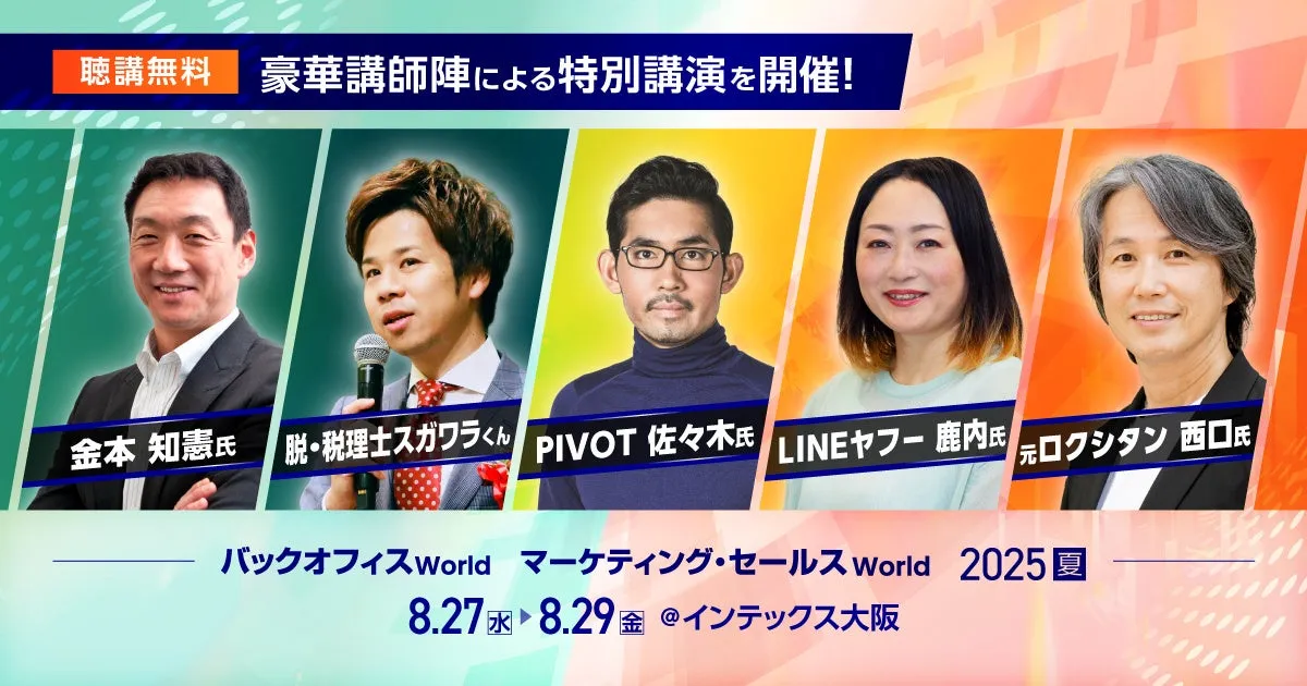 2025年8月27日から29日までの3日間、大阪のインテックスにて「バックオフィス World」と「マーケティング・セールス World」の展示会が開催されます。このイベントは、各業界のフロント部門とバックオフィス業務に焦点を当てた特別な機会です。