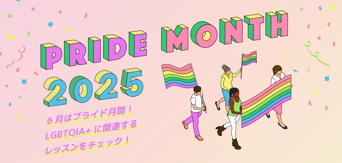 2025年のプライド月間に、LGBTQIA+に関するオンラインレッスンを受けることで、多様性についての理解を深め、自身の成長に役立てることができます。この機会にぜひ、新たな学びを体験してみてください。