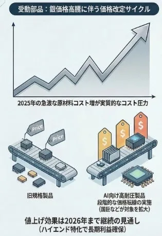 AI技術の急速な進展は、電子部品に対する新たな要求を生み出しています。台湾製の受動部品は、AIシステムの高性能化に寄与しており、このトレンドは今後も続くと予測されています。メーカー各社は、AIに適応した新製品の開発に力を入れています。