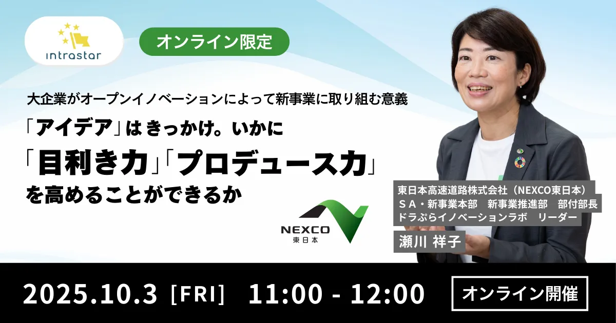 2025年10月3日金曜日、私たちの社会における新しいビジネスの可能性を広げることを目的に、“オープンイノベーションがもたらす新事業”に関する無料オンラインセミナーが開催されます。このイベントは、共創コミュニティ「Intrastar(イントラスター)」が主催し、新たなアイデアで大企業がどのように変革を遂げ、新事業に挑戦しているかを探ります。