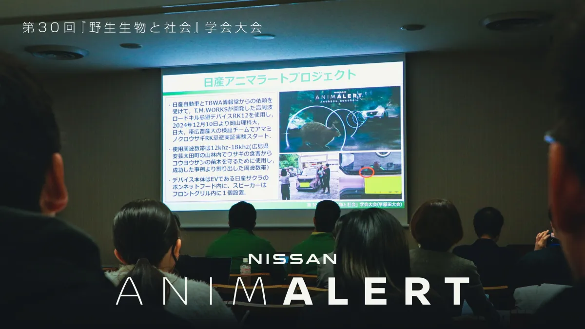 日産自動車株式会社は、岡山理科大学や日本大学、帯広畜産大学、奄美市、環境省などと連携し、ロードキルを防ぐ「NISSAN ANIMALERT PROJECT」を立ち上げました。このプロジェクトは、特に日本の奄美大島と徳之島に生息する絶滅危惧種のアマミノクロウサギに焦点を当てています。2025年12月21日、早稲田大学で開催された第30回『野生生物と社会』学会大会において、実証実験の進捗が報告されました。