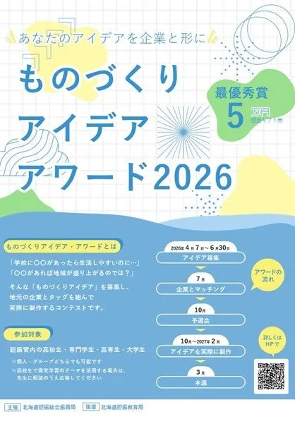 北海道胆振総合振興局は、地域のものづくり産業を活性化するため、学生を対象とした「ものづくりアイデア」の募集を行います。この取り組みは、胆振地域の特性を生かし、学生が創造したアイデアを企業が形にするという新しい試みです。さあ、あなたのアイデアが未来を創るかもしれません!