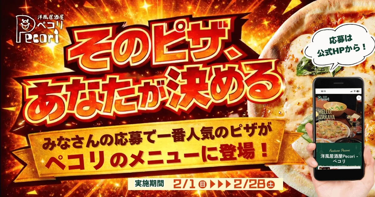 飲食企業ファイブグループが運営する「洋風居酒屋 Pecori(ペコリ)」が、2026年2月1日から2月28日まで、「そのピザ、あなたが決める」というユニークなアンケート企画を実施します。この企画は、全8店舗で展開されるもので、顧客参加型の新作ピザ開発を目指しています。顧客の好みを反映した商品作りを行うことで、より多くの人々に支持される店作りをおこなう狙いがあります。