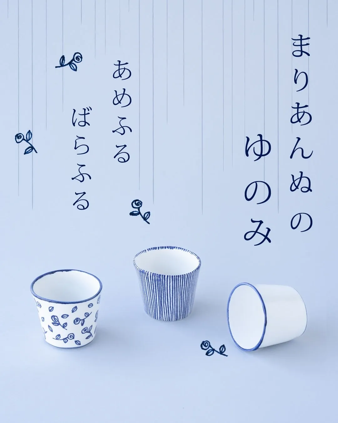 マリアンヌは日常的に使用されるものだからこそ、使う人が一目で彼女の作品だと分かるものを作りたかったと語る。彼女が故郷のスウェーデンで古い日本の小さな茶碗に出会った経験が、今回の作品に影響を与えている。この茶碗が彼女にとってのインスピレーション源となり、200年の時を経て、二つの新たな湯呑み、【あめふるゆのみ】と【ばらふるゆのみ】を生み出した。