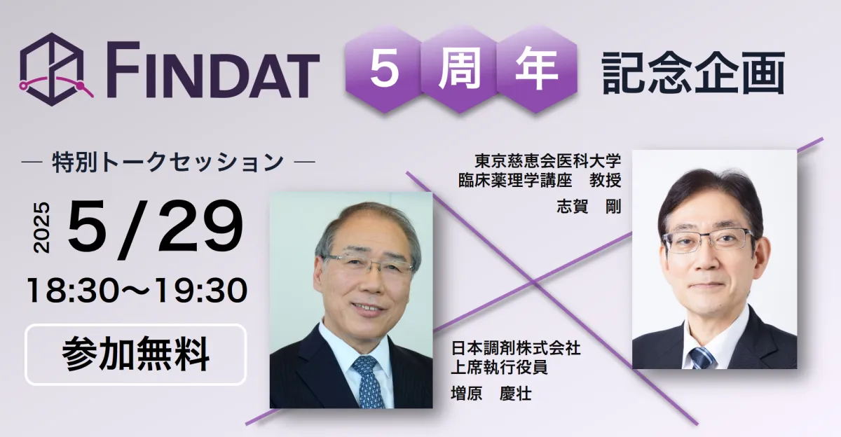 全国に462店舗以上の調剤薬局を展開する日本調剤株式会社が、医薬品情報WEBプラットフォーム「FINDAT」のリリース5周年を祝うために特別なトークセッションを開催します。本企画では、医療の革新をしっかり支え続けるFINDATの成り立ちとこれまでの活動を掘り下げていきます。