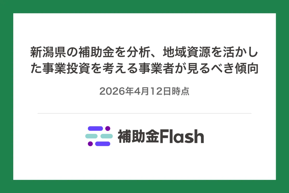 新潟県は、その豊かな地域資源を活かし、多様な事業者向けに補助金や助成金制度を提供しています。特に、中小企業や個人事業主にとって、これらの支援制度を理解して活用することは大変重要です。2026年4月12日現在、株式会社Franca AIが運営する支援制度検索ポータル「補助金フラッシュ」のデータベースから、95件の新潟県内で利用可能な補助金が分析されました。この数値は、事業計画を策定する際の有益な情報となります。