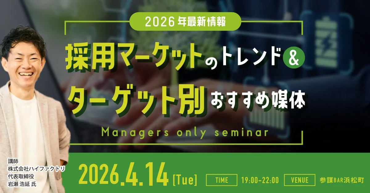 株式会社経営参謀が運営する経営者コミュニティ「参謀」は、2026年4月14日(火)に『【2026年最新情報】採用マーケットのトレンドと採用ターゲット別のおすすめ媒体を解説』という無料勉強会を開催します。このイベントは、中小企業やスタートアップの経営者、そして人事担当者の皆さんを対象にしており、参加費は無料の勉強会ですが、懇親会には費用がかかります。