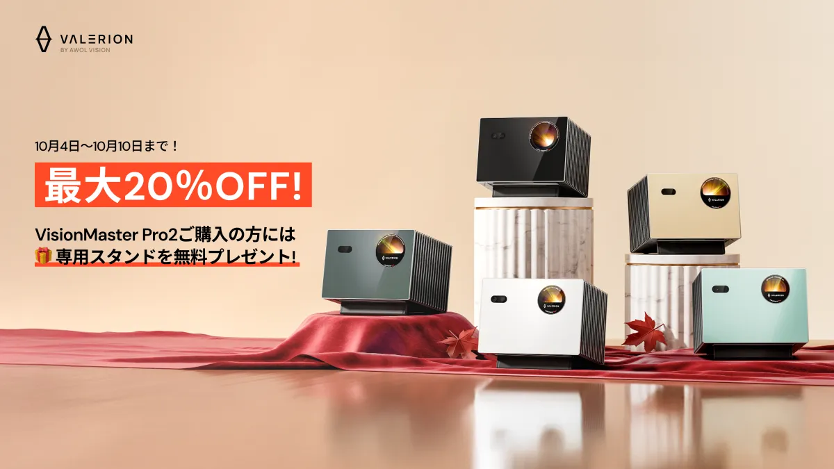 Valerionは、ホームシネマプロジェクターの先駆者として、2025年10月4日から10月10日までの期間に限り、Amazonプライム感謝祭で人気モデルを最大20%OFFで販売します。このセールは、Amazonプライム会員に限定され、割引に加えて独自の購入者特典も用意されています。
