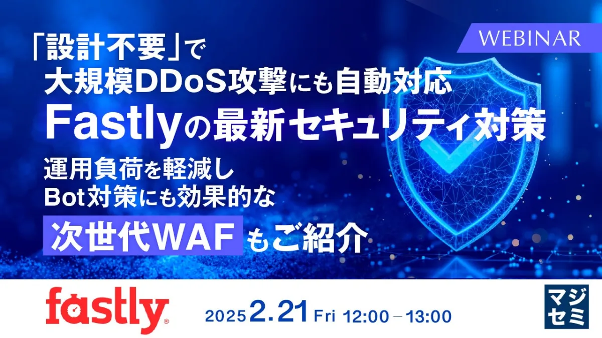 このような状況を踏まえ、Fastlyは高度なDDoS攻撃やWebアプリケーションの脆弱性に対処するためのセミナーを開催します。このウェビナーでは、Fastlyが提供する次世代WAFである「Fastly Next-Gen WAF」が取り上げられます。特に2024年10月に搭載された「DDoS自動防御」機能に焦点を当て、実際のデモや導入事例を交えて紹介されます。これにより、オンプレミスやクラウド環境を問わず統一したセキュリティ運用が実現できることが体感できるでしょう。