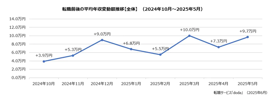 2025年5月版のdoda転職前後の年収変動レポートが、パーソルキャリア株式会社によって発表されました。このレポートは、dodaエージェントサービスを利用して転職を決定した方々の年収の変化を詳しく示しています。ここでは、その内容を詳しくご紹介します。
