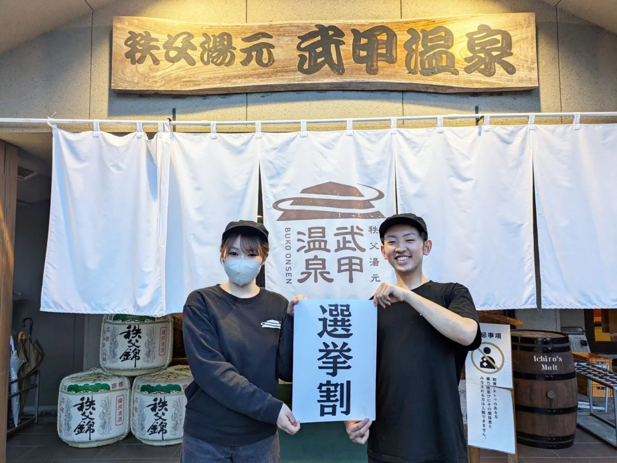 秩父湯元 武甲温泉の選挙割キャンペーン