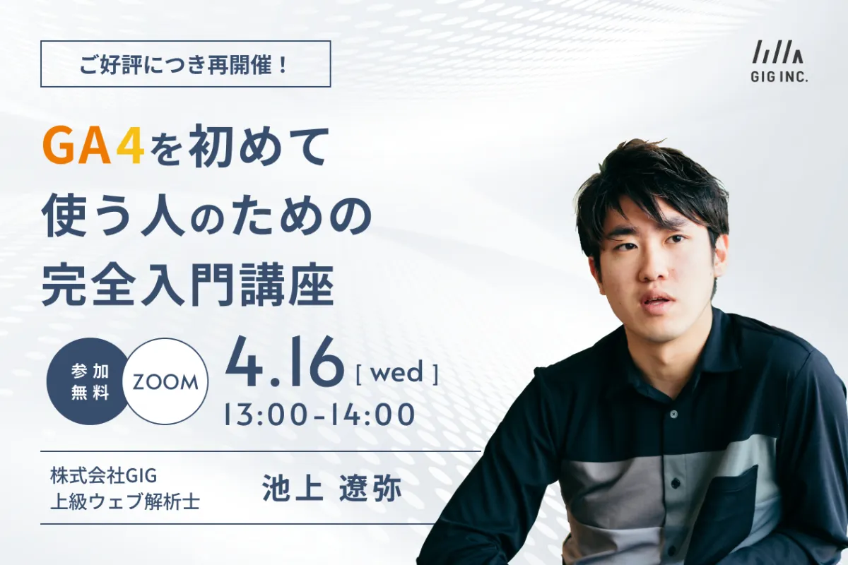 2025年4月16日(水)に、人気ウェビナー「GA4を初めて使う人のための完全入門講座」が再び開催されることとなりました。前回の開催では、130名の申込を頂き、参加者の満足度は平均4.12(5段階中)という高評価をいただきました。この成功に後押しされ、再開催が決定しました。
