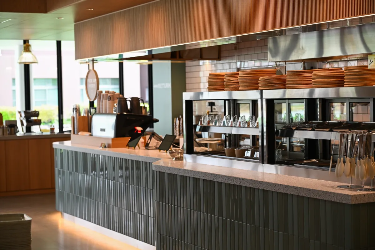 カフェのコンセプトは「CAMPUS SOCIAL HUB ~つながる・集まる・楽しむ~」です。この言葉が示す通り、居心地の良い空間で人々が集まり、楽しい時間を共有できるように工夫されています。自然素材を取り入れたインテリアは、リラックスできる雰囲気を生み出し、まさに学生や地域住民が気軽に訪れることができる場所になっています。