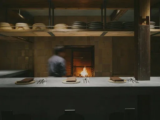 このレストランは、「山からの恵みが循環する場所」をテーマにしています。周囲の雪深い山々やブナの森に抱かれた野沢温泉では、水と火、そして木が循環し、自然との一体感が感じられます。ダイニングの中心には薪火グリラーがあり、料理をする際はその揺らめく炎を眺めながら、五感を刺激する体験を提供しているのです。