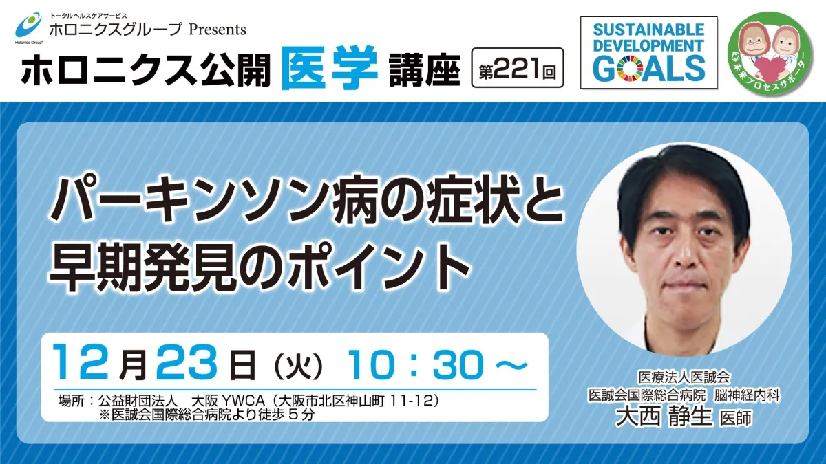 医療法人医誠会が主催する公開医学講座が、来る2025年12月23日に大阪YWCAにて開かれることが決定しました。この講座では、パーキンソン病の初期症状やその早期発見の重要性について学ぶことができます。近年、65歳以上の約100人に1人がこの病気を発症するという統計が示しているように、パーキンソン病は身近な疾患です。そのため、早期に受診し、適切な対策を講じることがますます求められています。
