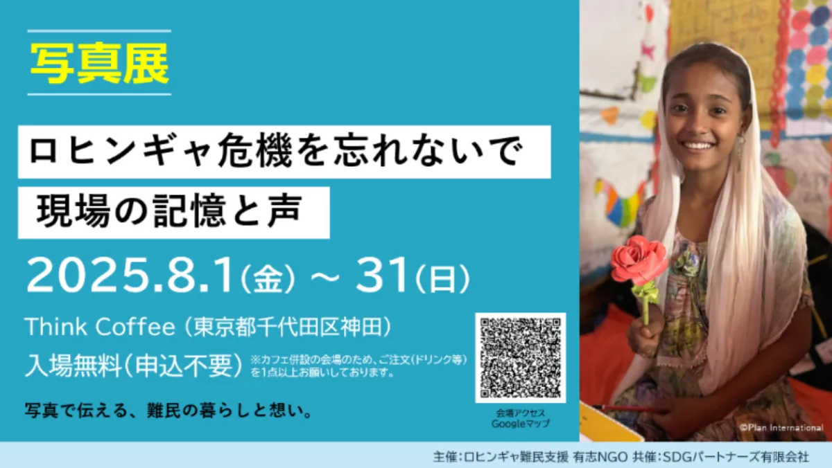 AAR Japan(特定非営利活動法人 難民を助ける会)は、2025年8月に東京都でロヒンギャ難民の現状を伝えるための写真展とセミナーを開催します。これは、現在進行中のロヒンギャ難民危機について考える貴重な機会となります。