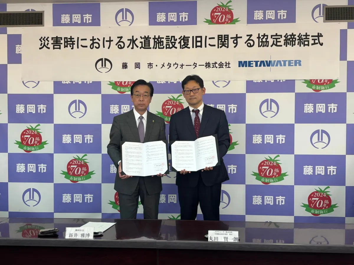2025年3月27日、メタウォーター株式会社(代表取締役社長:山口 賢二)は、群馬県藤岡市(市長:新井 雅博)との間で「災害時における水道施設復旧に関する協定」を締結しました。この協定は、災害時に水道施設に損傷が生じる恐れがある場合に、迅速かつ効果的に水道の復旧活動を行うことを目的としています。