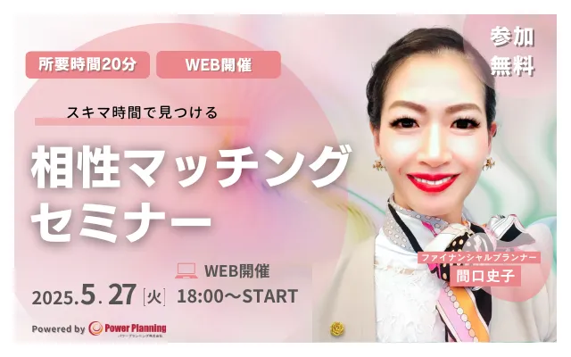 5月27日(火)18時、無料マネーセミナーサービス『アットセミナー』が、オンラインで『相性マッチングセミナー』を開催します。このセミナーでは、スキマ時間を利用して自分にぴったりのファイナンシャルプランナー(FP)に出会えるチャンスです。