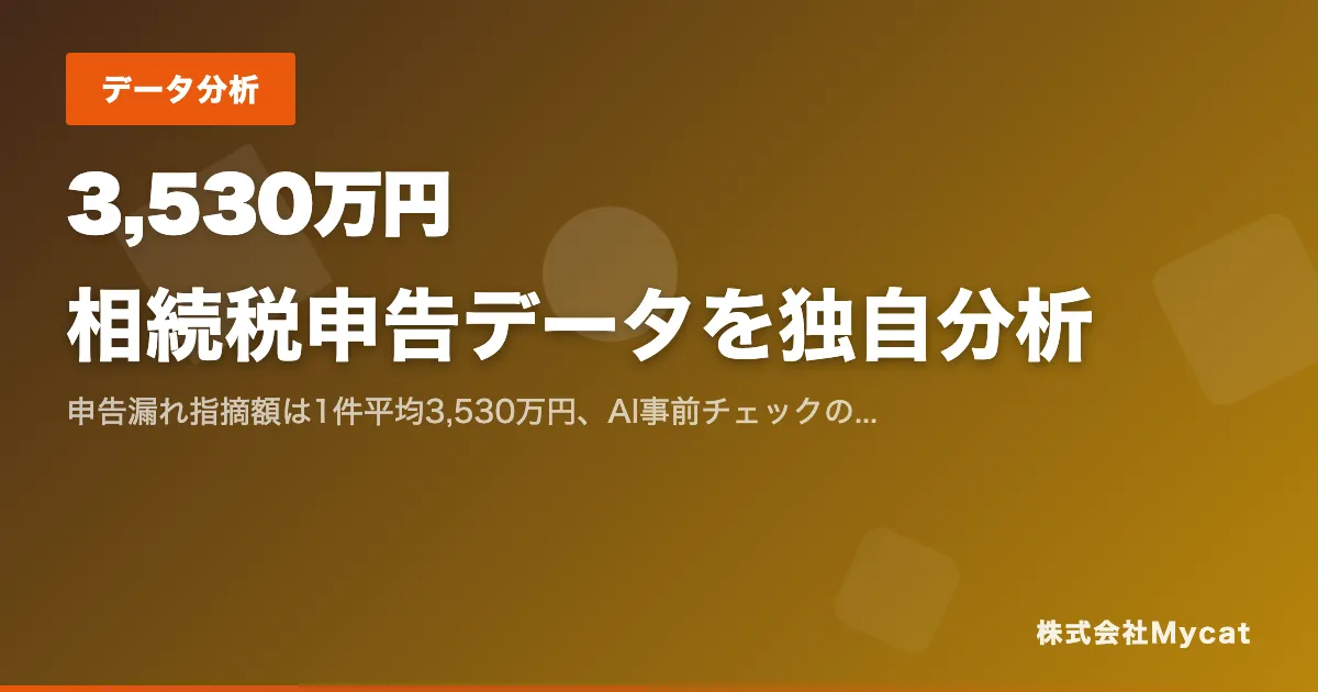 2026年に向けての注目の情報が、株式会社Mycatから公開されました。本レポートは相続税申告に関するデータを詳細に分析したものです。相続税や申告実態に関心のある方には、見逃せない内容となっています。