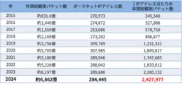 国立研究開発法人情報通信研究機構(NICT)によるNICTER観測レポート2024が公開されました。この報告は、NICTERプロジェクトにおけるサイバー攻撃関連通信の観測結果をまとめたもので、2023年に比べてサイバー攻撃が11%増加したことを示しています。特に、IoT機器に対するボット感染の増加が顕著で、日々約2,600台が感染しているとされています。