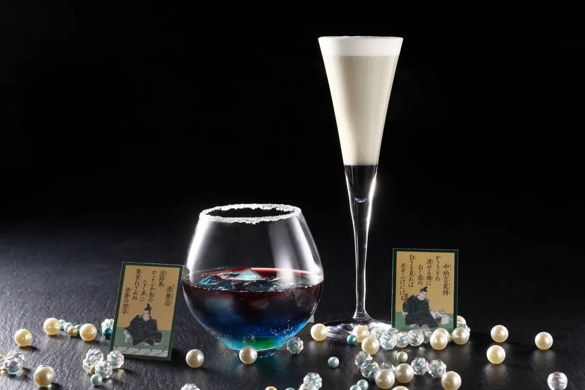 『百人一首カクテル』シリーズは、2017年に始まり、今年で早くも9年目に突入しています。シリーズの第25弾である今回は、歌人の情緒や情景をイメージした2つのカクテルがラインアップされています。これにより、全体で52首の歌がカクテルとして表現されることになります。