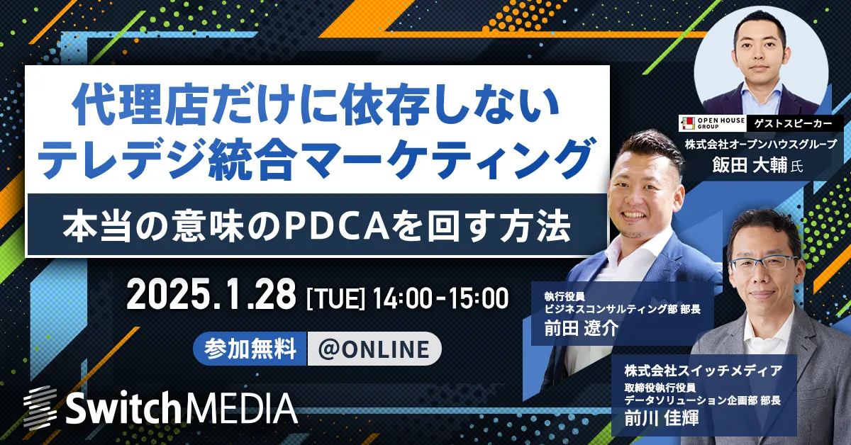 2025年1月28日(火)に、株式会社スイッチメディアと株式会社オープンハウスグループが協力し、オンラインセミナー「代理店だけに依存しないテレデジ統合マーケティング本当の意味のPDCAを回す方法」を開催します。このセミナーは、デジタルとテレビのマーケティング戦略を融合させたい企業の担当者にとって、必見の内容となっています。