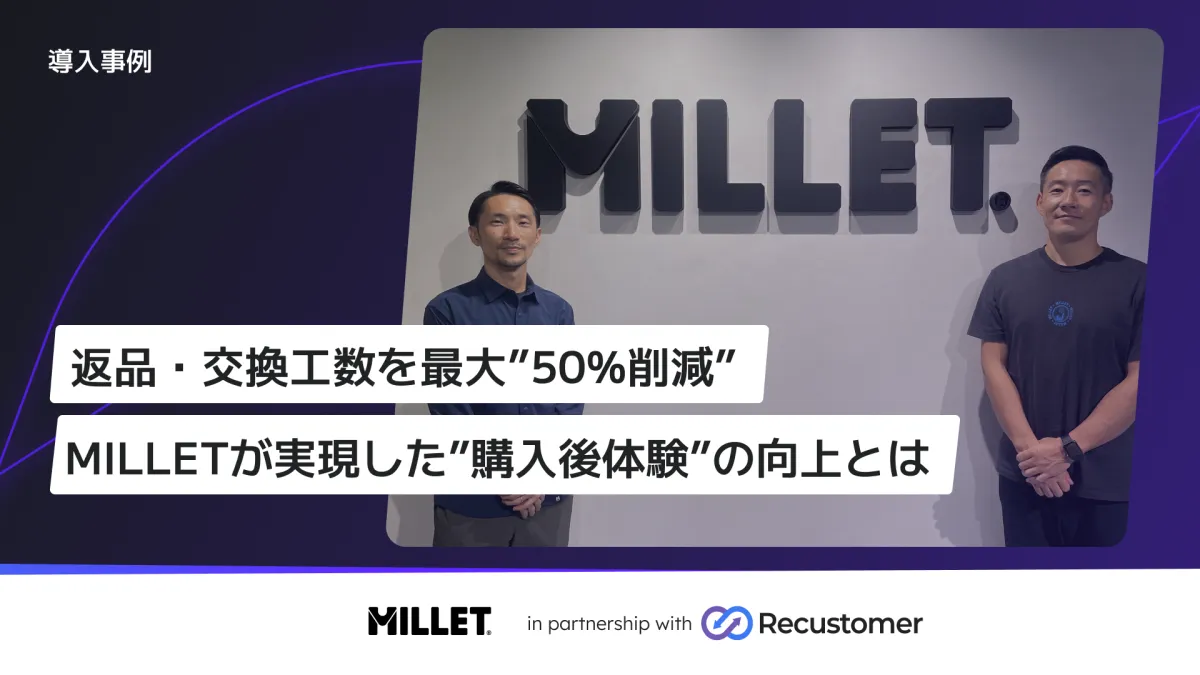 フランス発のアルパインブランド「ミレー」が、よりスムーズなカスタマーサービスを提供するため、Recustomerの「返品・交換」および「配送追跡」機能を導入しました。この施策によりミレーは、お客様に快適な購入後体験を提供できる体制を整えました。