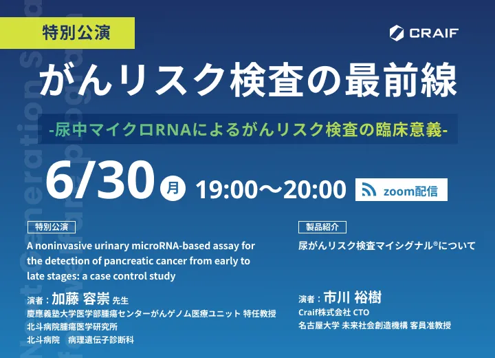 2025年6月30日、Craif株式会社は「がんリスク検査の最前線 〜 尿中マイクロRNAによるがんリスク検査の臨床意義 〜」というタイトルで医療機関向けのウェビナーを開催します。この講演会は、がんリスク検査の重要性を学ぶ貴重な機会であり、特に尿中マイクロRNAに焦点を当てています。