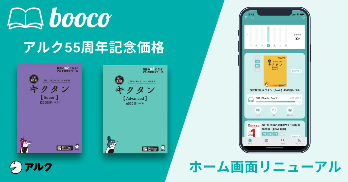 株式会社アルクが提供する語学学習アプリ「booco(ブーコ)」が、ホーム画面のリニューアルにより、より使いやすくなりました。このリニューアルは、学習者のフィードバックを基にしており、勉強の効率を高めることを目指しています。さらに、現在、「キクタンフェア」とアルクの創業55周年を記念した特別キャンペーンも実施中です。