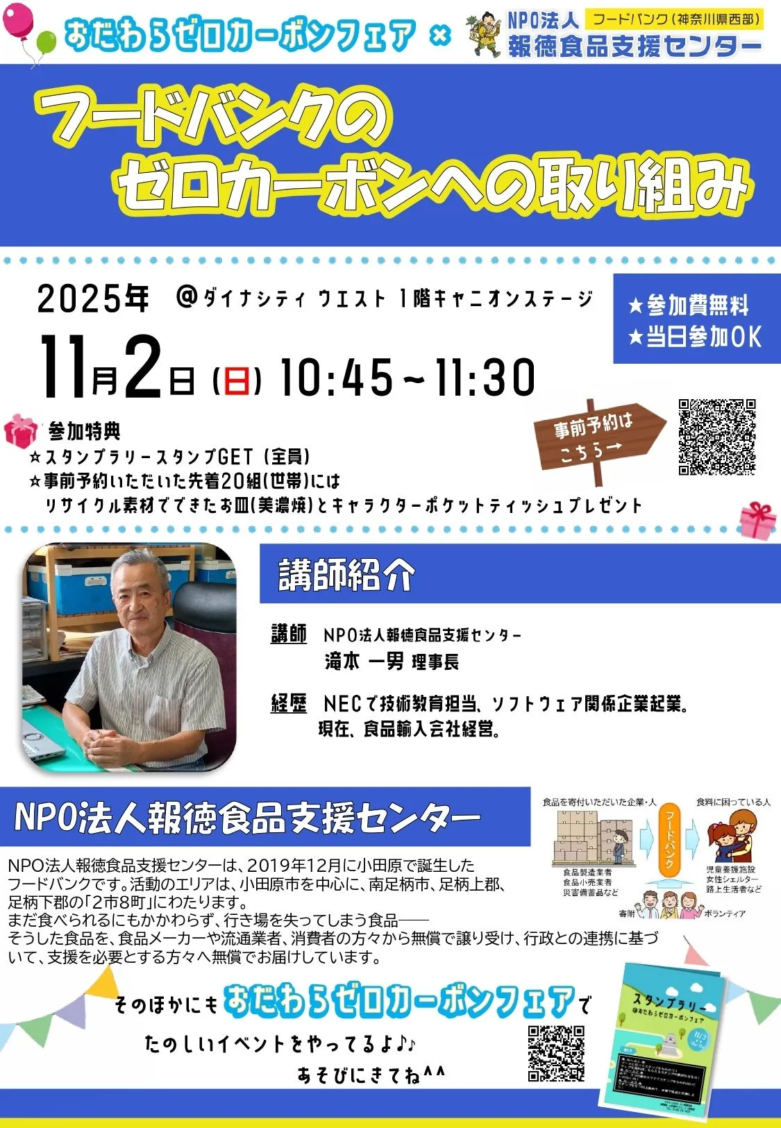 小田原市で、環境への配慮と持続可能性を考える「おだわらゼロカーボンフェア」が開催されます。その一環として、教育的な要素を含む学習イベントが企画されています。このイベントでは、フードバンクの取り組みを通じて、食べ物を無駄にしないことで如何にしてゼロカーボン達成に寄与できるかを説明する機会が設けられています。
