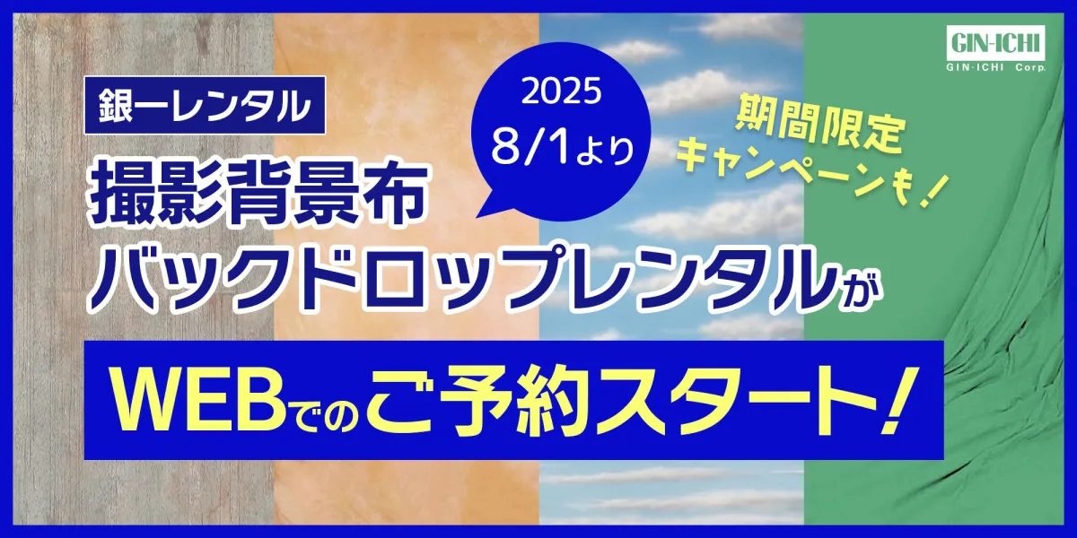 長年にわたり撮影機材のレンタルサービスを提供してきた銀一レンタルが、ついにバックドロップのWEB予約サービスを開始しました。これにより、従来のお電話やメールによる予約から、より便利にオンラインでの手続きを実現しました。これまで以上に多くの方にご利用いただける機会が広がります。