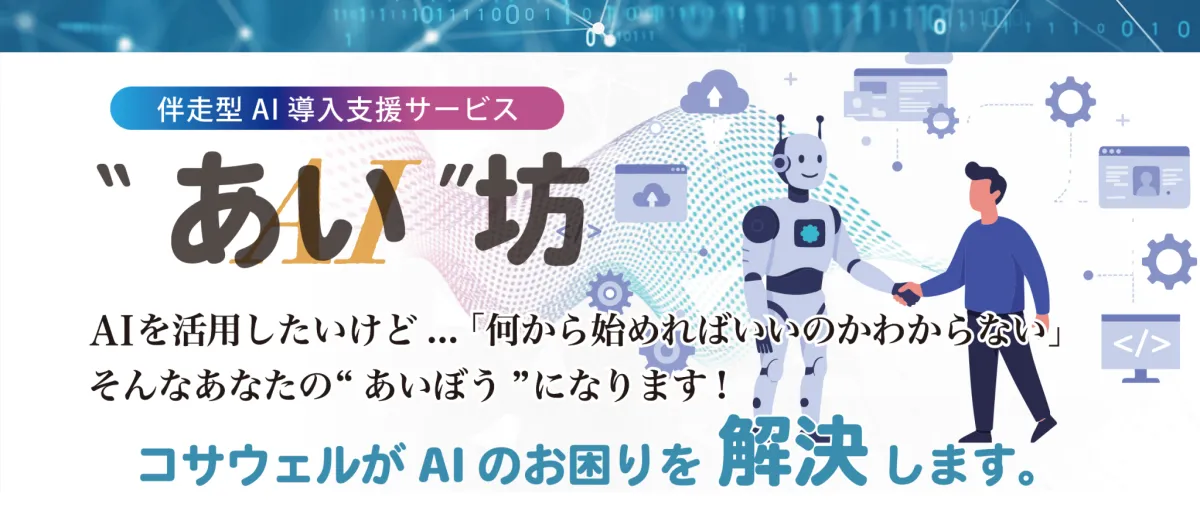 「#あい坊」は、企画立案から導入、運用、定着に至るまでを一貫してサポートする伴走型のAI導入支援サービスです。これにより、中小企業は自社のニーズに合わせたAI活用が可能となり、業務の効率化と競争力の強化に繋がります。