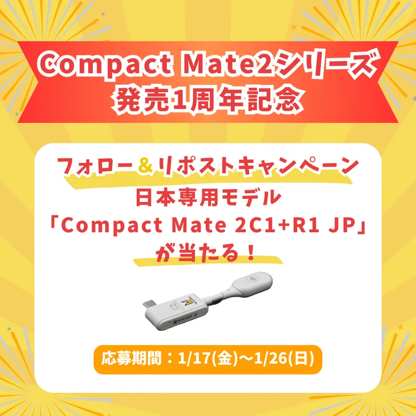 株式会社マトリックスコミュニケーションズが、ワイヤレスディスプレイ送受信機『Compact Mate 2 C1+R1 JP(MCCMT250)』をプレゼントするキャンペーンを1月17日から1月26日まで開催します。このキャンペーンは、同社のX(旧ツイッター)公式アカウントをフォローし、指定の投稿をリポストするだけで参加可能。抽選で1名に、最新のワイヤレスディスプレイ機器が当たります。